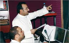 - أنا أتسلم النصوص من المؤلف الأستاذ يوسف الجلاهمة والتقي مع الممثلين لاطلاعهم عليها، ووضع النقاط على الحروف استناداً إلى توجيهات المؤلف. أحياناً يعمد الممثل إلى إضافة بعض «الإفيهات» إلى ما كُتب بالاتفاق مع المخرج جواد العلوي. كمخرج منفّذ كلّف من قبل المخرج بالإشراف على عملية تسجيل الصوت كاملة. وأقتنص الفرصة هنا لتوجيه الشكر إلى مهندس الصوت سامي السعيد هو الذي يضع الألحان ويقوم بعملية الإنتاج. وبعد أن يتم تركيب الصوت ننتقل إلى معالجة الصورة. كما إنني اهتم بتصميم الموسيقى التصويرية المتوافقة مع الحالة الدرامية التي يعبّر عنها المشهد. ونتناوب أنا وأخي جواد على الإشراف على فريق التقنيين والفنيين لإنهاء العمل في الوقت المحدد.