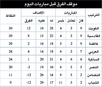 يلتقي «الكويت» الذي يترقب نتيجة كاظمة مع القادسية والعربي مع السالمية في المرحلة (17) للدوري الممتاز للقدم