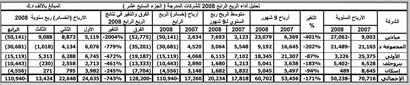 تناول تقرير لمركز «الجُمان» للاستشارات الاقتصادية نتائج الربع الرابع من العام 2008 للشركات المدرجة التي أعلنت نتائجها خلال الفترة من 9 أبريل حتى 15 أبريل 2009. حيث لا تظهر تلك النتائج بشكل منفصل رسمياً. ويهدف التحليل المبسط إلى تسليط الضوء على نتائج الربع الرابع من 2008 ومقارنتها بالفترة ذاتها من العام السابق، بالإضافة إلى قياسها بمتوسط نتائج الأرباع الثلاثة الأولى من العام نفسه. وجاء التحليل كالآتي: