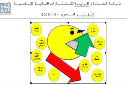وتابع التقرير «أما بالنسبة للشركات التي تتعامل وفقاً للشريعة الاسلامية، فلم يحقق نموذج أعمالها الذي تستند اليه في عملياتها أي تمايز عن الشركات التقليدية فكانت منجرفة معها في الاعصار. وهذا مثبت في الأرقام ومؤشرات الأداء التي تشتمل عليها قاعدة بيانات شركة المشورة والراية للاستشارات المالية الاسلامية».