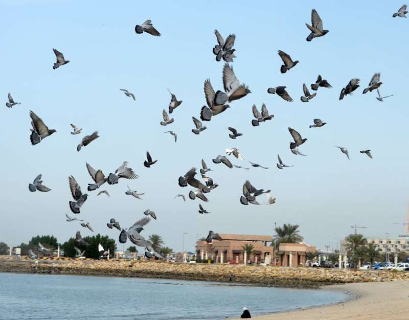 والتقطت عدسة الزميل أسعد عبدالله صوراً لسرب من الحمام، يستعد للتحليق فوق شاطئ الشويخ، مستغلاً استقرار الأحوال الجوية.