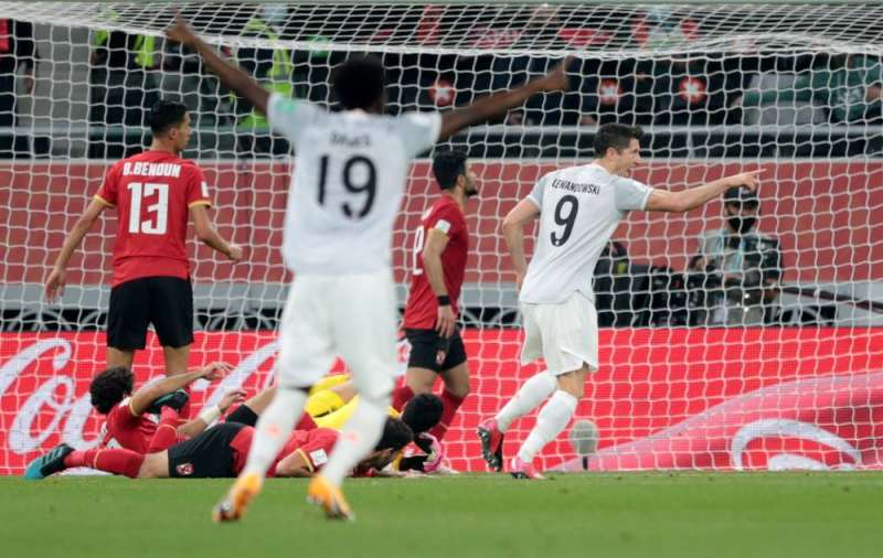 وضع العملاق الألماني بايرن ميونيخ بطل أوروبا حدا لحلم الأهلي المصري بأن يكون ثالث ممثل للقارة الافريقية يصل الى نهائي مونديال الأندية المقام بنسخته السابعة عشرة في قطر، وذلك بالفوز عليه 2-صفر، مساء اليوم الاثنين، بثنائية البولندي روبرت ليفاندوفسكي في نصف النهائي على ستاد أحمد بن علي في الريان.