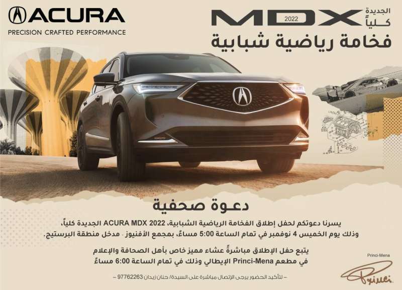 أطلقت شركة «ACURA الملا»، إحدى شركات مجموعة «الملا»، والوكيل الحصري في الكويت لسيارات «ACURA»، أول سيارة يابانية فاخرة في العالم، سيارة «MDX 2022» الجديدة كلياً في مجمع «الأفنيوز» عند مدخل «برستيج».