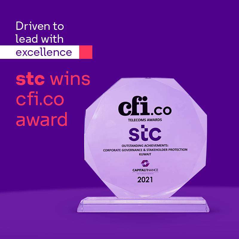 فازت شركة الاتصالات الكويتية «stc» بجائزة مجلة «كابيتال فاينانس إنترناشونال» («CFI.co»)، في مجال «حوكمة الشركات وحماية أصحاب المصلحة في الكويت للعام 2021، تقديراً لإنجازاتها البارزة وثقافتها المؤسسية القائمة على تعزيز معايير النزاهة.