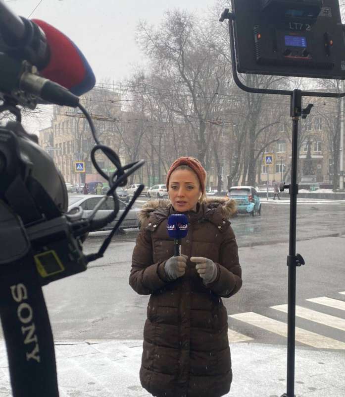 لم تكن اوكرانيا ارتدت بعد «المرقّط»، وكانت الحرب وطبولها لا تزال مجرد أصداء بعيدة حين توجهت بيسري، المذيعة ومراسلة محطة العربية البحدث الإخبارية الى أوكرانيا في الخامس من فبراير بعدما استشفت ومحطتها أن ما يتهيأ هناك أمر كبير ويحتاج الى تغطية وإن لم يبدأ بعد.