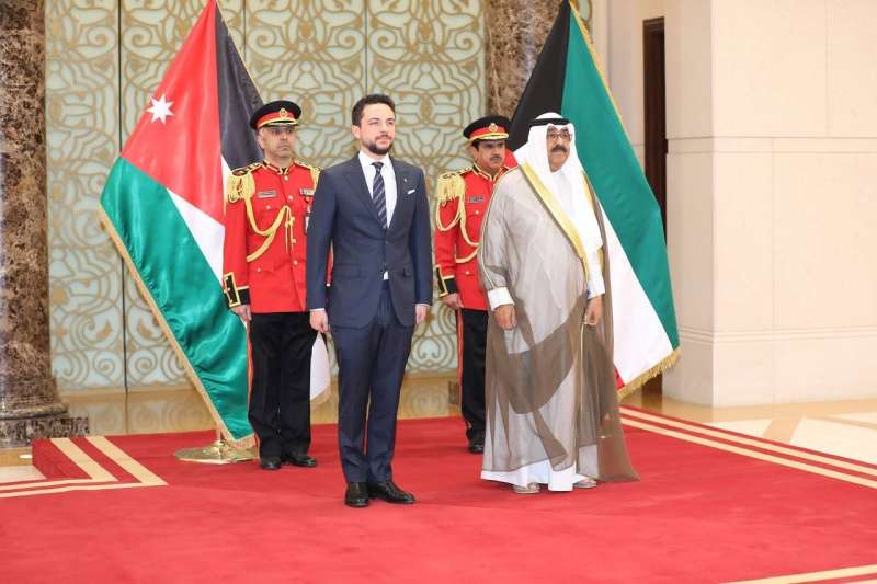وقد رافقه وفد رسمي يضم كلا من دولة رئيس الوزراء بالمملكة الأردنية الهاشمية الدكتور بشر الخصاونة ووزير الاستثمار المهندس خيري عمرو وسفير المملكة الأردنية الهاشمية لدى الكويت صقر أبو شتال وعدد من كبار السؤولين.