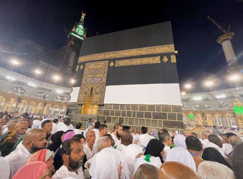 وأدى المئات الطواف حول الكعبة، مرتدين ملابس الإحرام وبعضهم يمسك مظلات لتقيه حرارة الشمس اللافحة.