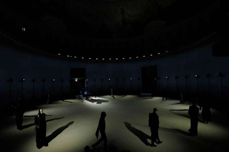 وقدمت دار أزياء سان لوران المملوكة لمجموعة كيرينغ الفرنسية للعلامات التجارية الفاخرة، عرضها في «بورس دو كوميرس» وهي بورصة قمح قديمة تم تجديدها لتضم مجموعة الفنان بينو للفن المعاصر، حيث سار العارضون في معاطف داكنة بأكتاف بارزة وقمصان بيضاء مضاف إليها عقد كبيرة أو قمصان مفتوحة تظهر جزءا من الصدر.