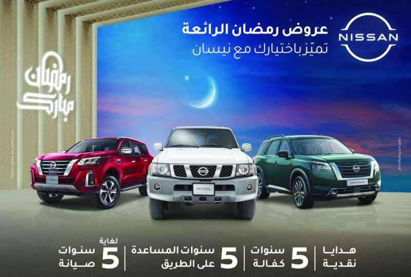 أطلقت شركة عبدالمحسن عبدالعزيز البابطين، الوكيل المعتمد لسيارات نيسان في الكويت، عروضاً لا تقاوم بمناسبة قدوم شهر رمضان على مجموعة واسعة من موديلات «نيسان» بما في ذلك «نيسان باترول» الأيقونية، و«نيسان اكس – تريل» الجديدة كلياً، و«نيسان باترول نيسمو» التي تنفرد بأدائها الفائق، و«نيسان سوبر سفاري» 2022 بأدائها المميز على الطرق الوعرة، و«نيسان باثفايندر» 2023 متعددة الاستخدامات، ونيسان «إكس- تيرا» 2023.
