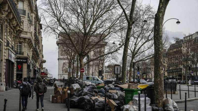 تغزو رائحة النفايات الكريهة شوارع باريس وخارجها بسبب استمرار إضراب جامعي القمامة، في حين أنه من المقرر مواصلة الاحتجاجات المتفرقة في فرنسا ضد خطة إصلاح نظام معاشات التقاعد.