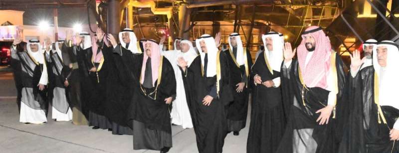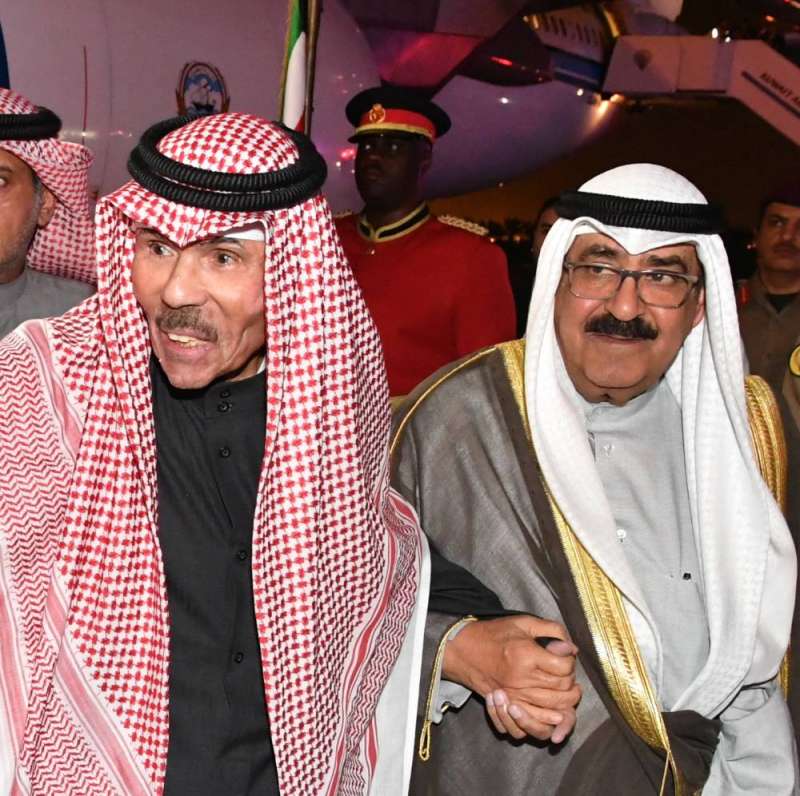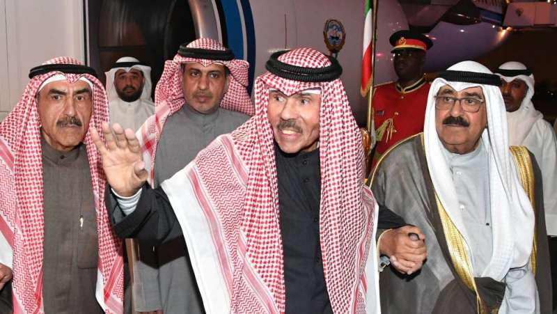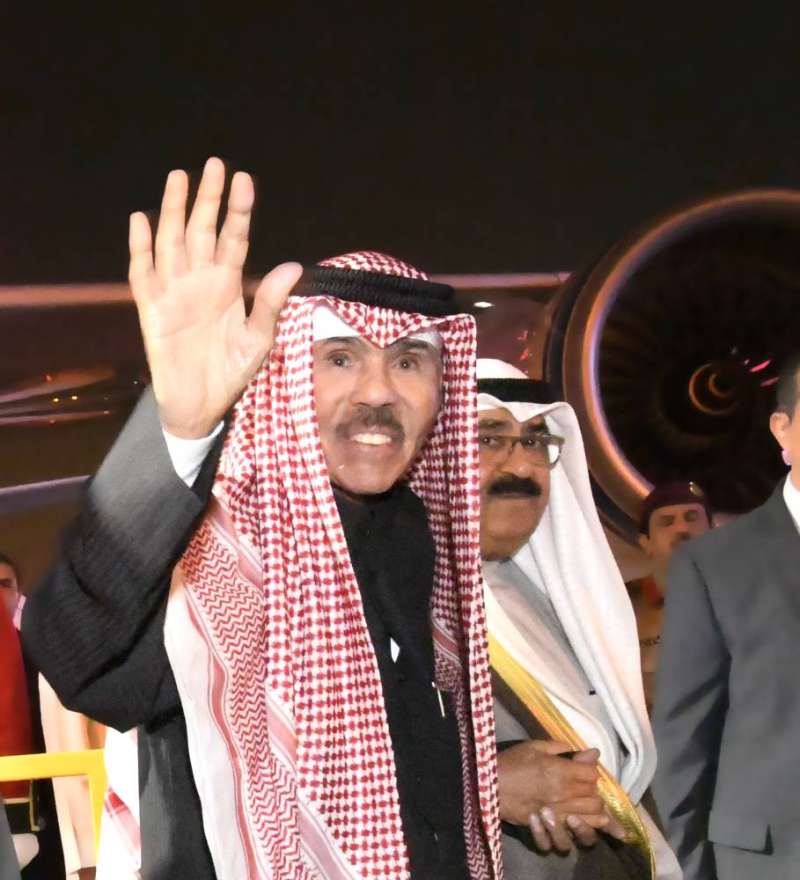 وكان في مقدمة مستقبلي سموه على أرض المطار سمو ولي العهد الشيخ مشعل الأحمد، وسمو الشيخ ناصر المحمد، ورئيس ديوان سمو ولي العهد الشيخ أحمد العبدالله، وسمو الشيخ صباح الخالد، وسمو الشيخ أحمد نواف الأحمد الصباح رئيس مجلس الوزراء، ونائب رئيس الحرس الوطني الشيخ فيصل النواف، والنائب الأول لرئيس مجلس الوزراء وزير الداخلية وزير الدفاع بالإنابة الشيخ طلال الخالد، ووزير شؤون الديوان الأميري الشيخ محمد العبدالله، وكبار المسؤولين بالدولة.