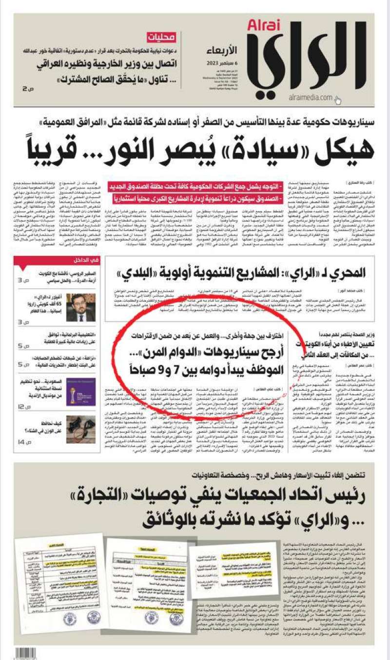 تأكيدا لما نشرته «الراي» في عددها الصادر يوم 5 سبتمبر تحت عنوان أرجح سيناريوهات «الدوام المرن»... الموظف يبدأ دوامه بين 7 و9 صباحاً ، اجتمع مجلس الخدمة المدنية، اليوم الخميس، برئاسة نائب رئيس مجلس الوزراء ووزير الدولة لشؤون مجلس الوزراء ووزير الدولة لشؤون مجلس الأمة ورئيس مجلس الخدمة المدنية بالإنابة عيسى الكندري، وقد تم مناقشة المقترح المقدّم من وزارة الداخلية بشأن تطبيق الدوام المرن في الجهات الحكومية، واصدر مجلس الخدمة المدنية قراره بالموافقة على المقترح المقدم وتكليف ديوان الخدمة المدنية لاصدار التعميم الخاص بالدوام المرن.