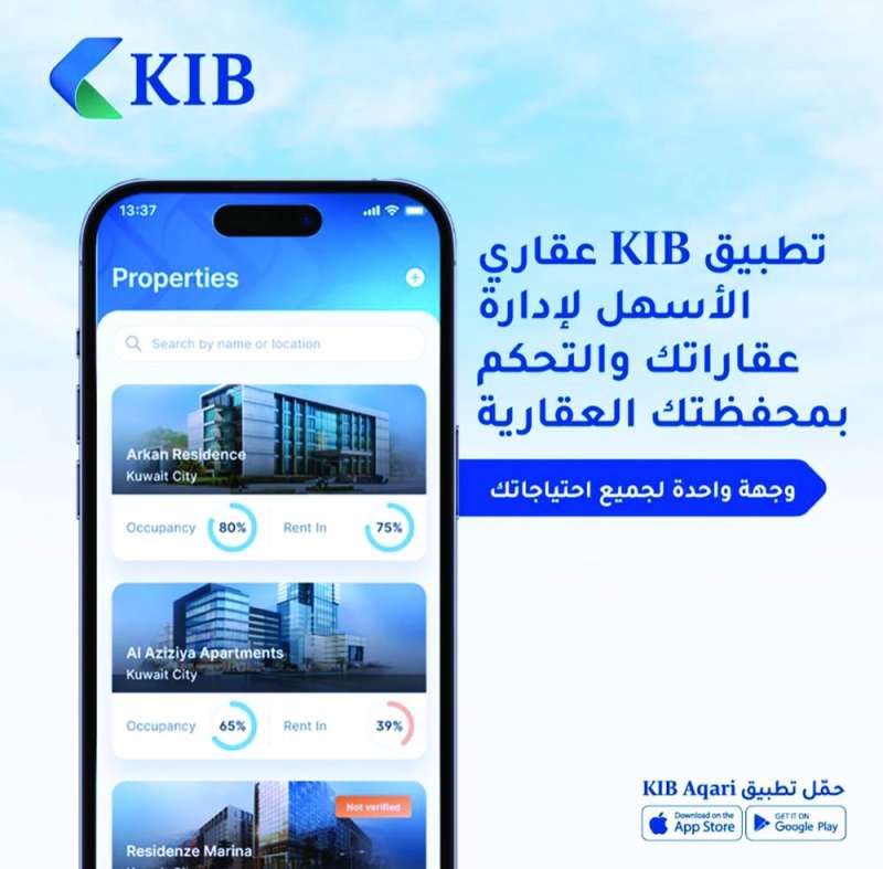 وأضاف أن «KIB Aqari» التي أطلقها البنك، في الآونة الآخيرة، مصمّمة لتكون وجهة واحدة تلبّي كل الاحتياجات العقارية، إذ تسهم في تمكين العملاء من التمتّع بمجموعة واسعة من الخدمات والحلول العقارية المتميّزة، وعلى رأسها خدمة طلب التقييم العقاري، التي تمّ إطلاقها للمرة الأولى في الكويت رقمياً ومن شأنها تمكين مستخدميها من تتبّع طلب التقييم العقاري والتحقّق من صحّة التقييمات باستخدام رمز «QR»، إضافة إلى المزايا الأخرى المتنوّعة والمخصّصة لإدارة العقارات، بدءاً بخدمة تحصيل الإيجار تلقائياً، وليس انتهاءً بإمكانية تتبّع حالة الإيجارات متأخرة الدفع وغيرها الكثير، وذلك من أجل ضمان راحة العملاء خلال إنجاز عملياتهم.