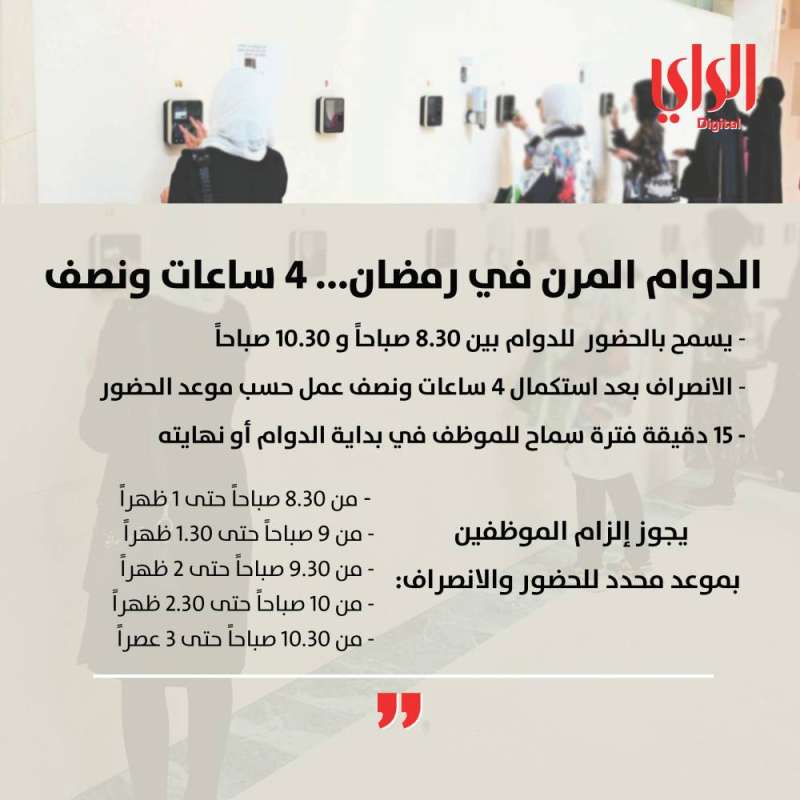 دوام مرن في رمضان... 4 ساعات ونصف يومياً