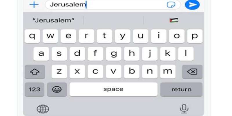قدم عدد من مستخدمي هواتف آيفون من أبل شكوى اثر انزعاجهم من بروز رمزٍ تعبيري يمثل العلم الفلسطيني عند كتابة كلمة «القدس» في تطبيق الشركة للرسائل النصية في جديد الاستقطاب الذي صاحب الحرب الإسرائيلية على قطاع غزة والتي دخلت شهرها السادس، الأمر الذي دفع أبل على الفور إلى وقف الاقتراح التلقائي لدى بعض مستخدمي آيفون.