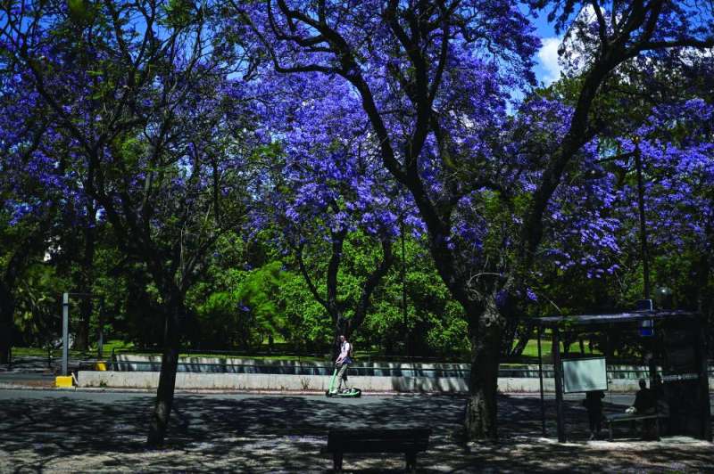 وتنتشر الجاكاراندا في كل أنحاء البرتغال، لكن هذه الأشجار المستوردة من البرازيل، إحدى المستعمرات البرتغالية السابقة، تكيّفت مع المناخ المحلي بشكل أفضل في لشبونة، على ما أوضحت آنا لويزا سواريس، مديرة حديقة أجودا النباتية التي زُرِعت فيها أولى هذه الأشجار.