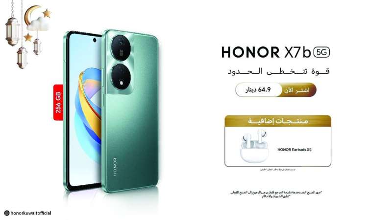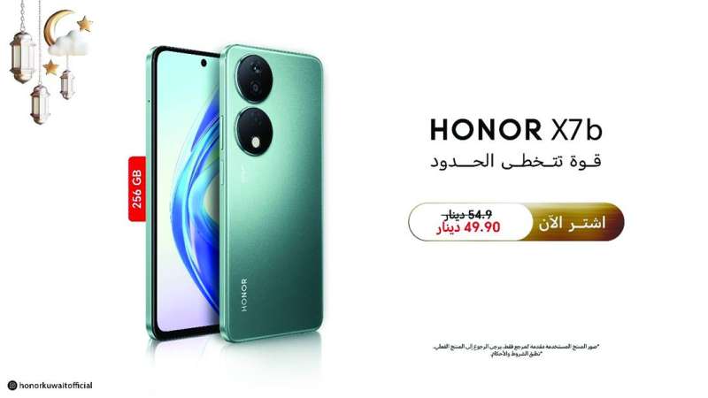 وسيكون HONOR X7b 4G متاحاً بسعر 54.9 دينار بدلاً من 54.9 دينار.