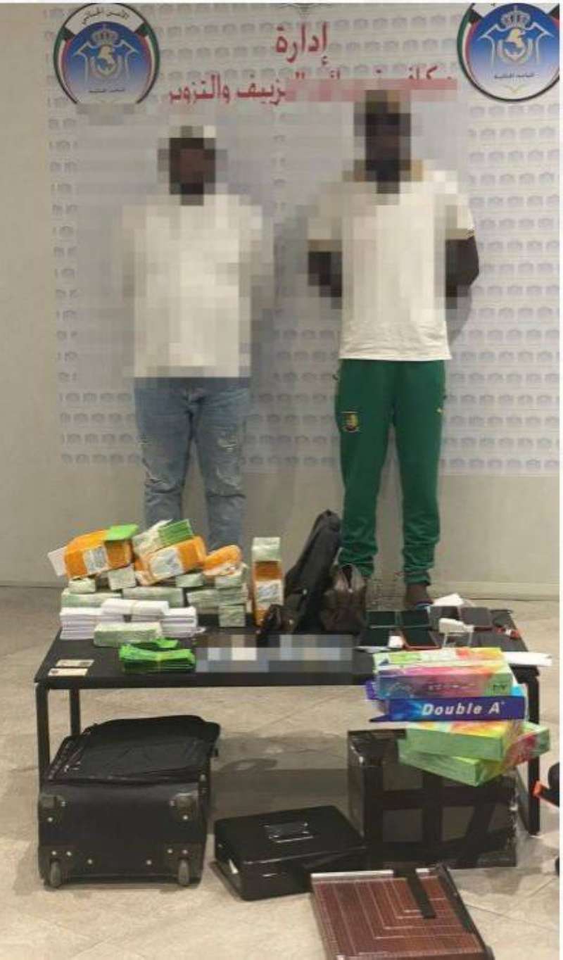 تمكنت الإدارة العامة للمباحث الجنائية «ادارة مكافحة جرائم التزييف والتزوير» من إلقاء القبض على تشكيل عصابي من الجنسية الأفريقية بتهمة النصب والاحتيال على الأشخاص عن طريق تزييف العملات النقدية وايهام الأشخاص باستبدال العملات النقدية (الدولار) بأقل من قيمتها الرسمية، حيث عثر بحوزتهما على كمية من الأوراق وهواتف نقالة تستخدم في عمليات النصب، وتم إحالتهما والمضبوطات إلى جهات الاختصاص لاتخاذ الإجراءات القانونية اللازمة بحقهما.