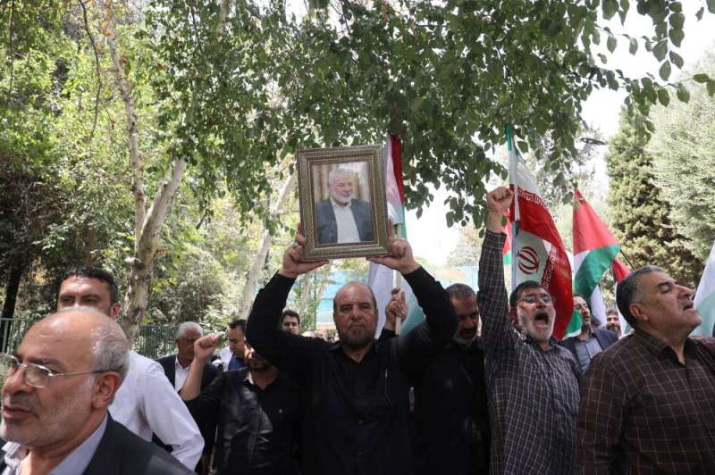 وتجمع حشد من المشيعين يحملون صور هنية وأعلاما فلسطينية في جامعة طهران بوسط العاصمة، بحسب ما أفاد مراسل لوكالة فرانس برس.