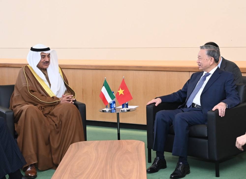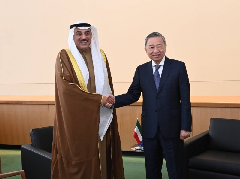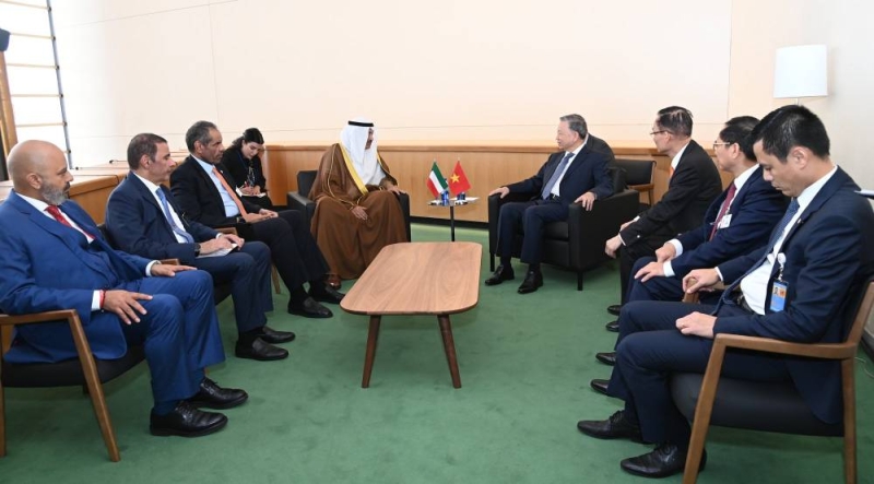 التقى ممثل سمو أمير البلاد الشيخ مشعل الأحمد، سمو ولي العهد الشيخ صباح الخالد، اليوم الثلاثاء، رئيس فيتنام تو لام، على هامش عمال اجتماعات الدورة الـ 79 للجمعية العامة للأمم المتحدة في مقر منظمة الأمم المتحدة بمدينة نيويورك في الولايات المتحدة.