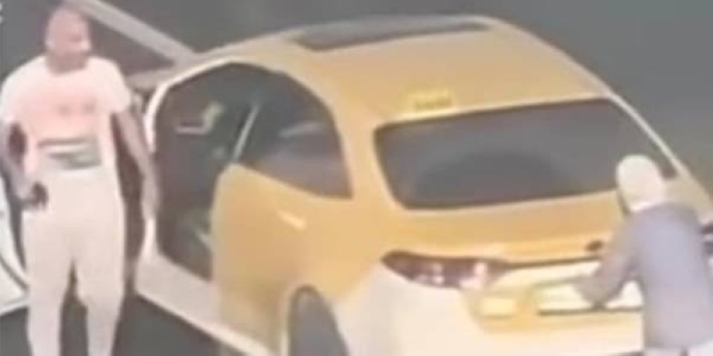 فتاة تركل سائق تاكسي بعد أن نزعت لوحة أرقام سيارته في عمّان
