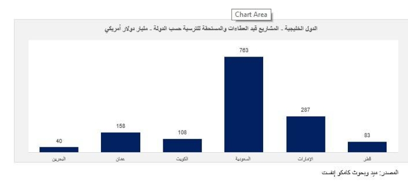 وفقا لميد، بلغت القيمة الإجمالية للمشاريع المخطط تنفيذها أو قيد التنفيذ في الدول الخليجية 2.7 تريليون دولار كما في 10 أكتوبر 2024.