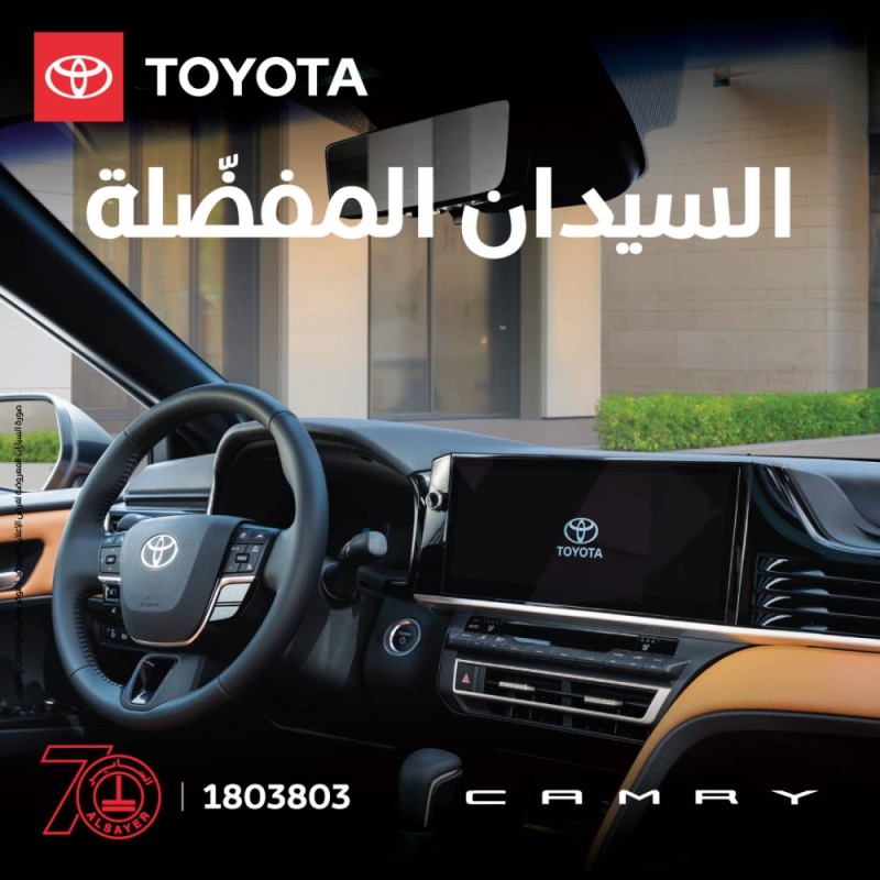 سعياً منهما لتسليط الضوء على إحدى مركبات تويوتا الأكثر تفضيلاً في الشرق الأوسط، أطلقت شركة مؤسسة محمد ناصر الساير وأولاده وتويوتا، النسخة الأحدث من طراز تويوتا كامري الأسطورية في المنطقة. ويتميز هذا الطراز بتصميم خارجي أنيق ورياضي، مع مقصورة داخلية رحبة عالية الجودة. تجمع بين الأداء المتفوق والتكنولوجيا المتطورة، مما يضمن للسائقين والركاب أقصى درجات متعة القيادة والراحة في كل رحلة.