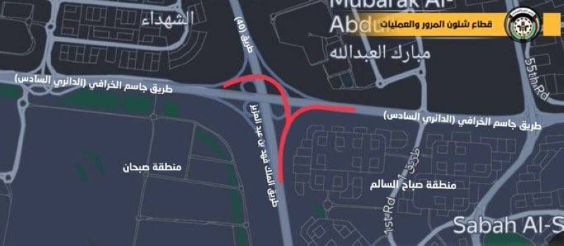 أعلنت الإدارة العامة للمرور عن إغلاق المخرج للقادم من الأحمدي عبر طريق الملك فهد بن عبد العزيز (طريق 40) المؤدي إلى طريق جاسم الخرافي (الدائري السادس) باتجاه المسيلة والمخرج الآخر يساراً المؤدي إلى الدائري السادس باتجاه الجهراء اعتباراً من اليوم الجمعة وحتى الأحد المقبل.