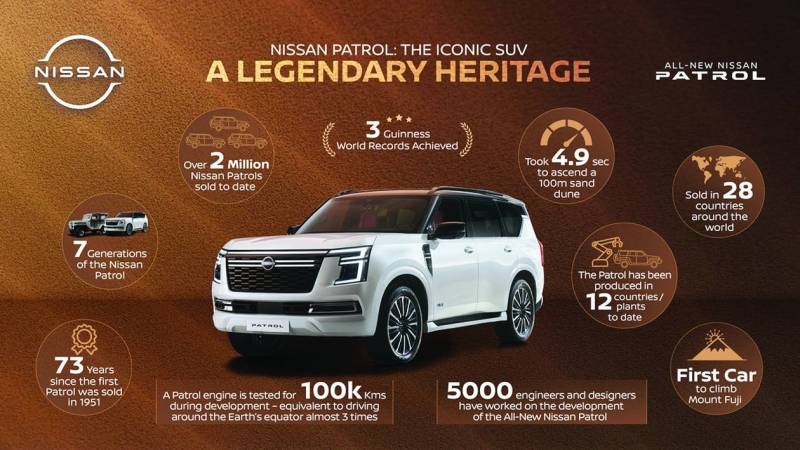 وبتجهيزاته وقدراته المتقدمة، يعد الجيل السابع من «نيسان باترول» أقوى طرازات هذه السيارة الأيقونية حتى الآن، بما يضع من معايير جديدة للأداء المتفوق التي تجمع ببراعة، عناصر الاستجابة والدقة والكفاءة. وبالمقارنة مع الإصدارات السابقة، ومع خيارين جديدين للمحرك، فإن هذا الجيل التالي من باترول، قد حقق فعلياً قفزات واثقة نحو المستقبل.