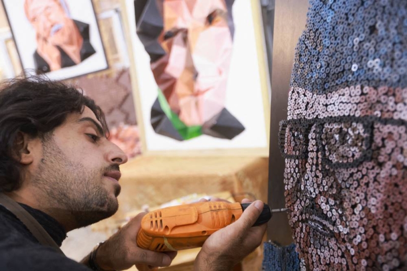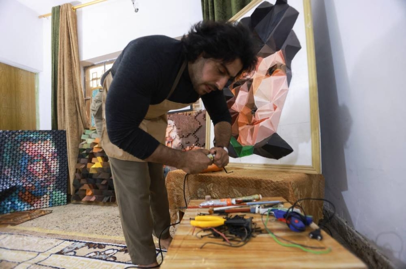 المهملات تستحيل لوحات إبداعية على يد فنان عراقي