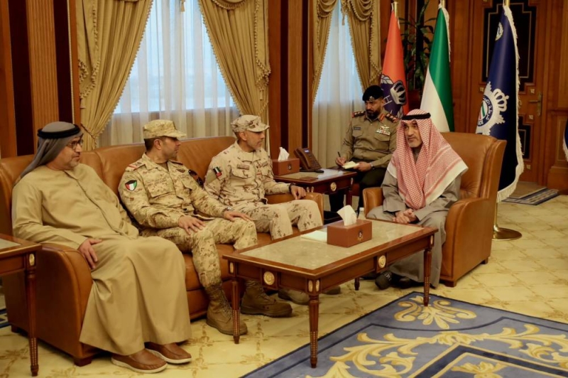 بحث النائب الأول لرئيس مجلس الوزراء ووزير الدفاع ووزير الداخلية الشيخ فهد اليوسف مع نائب رئيس أركان القوات المسلحة لدولة الإمارات العربية المتحدة الشقيقة اللواء الركن الشيخ أحمد بن طحنون آل نهيان سبل تعزيز التعاون بين البلدين الشقيقين، لاسيما في المجال العسكري.