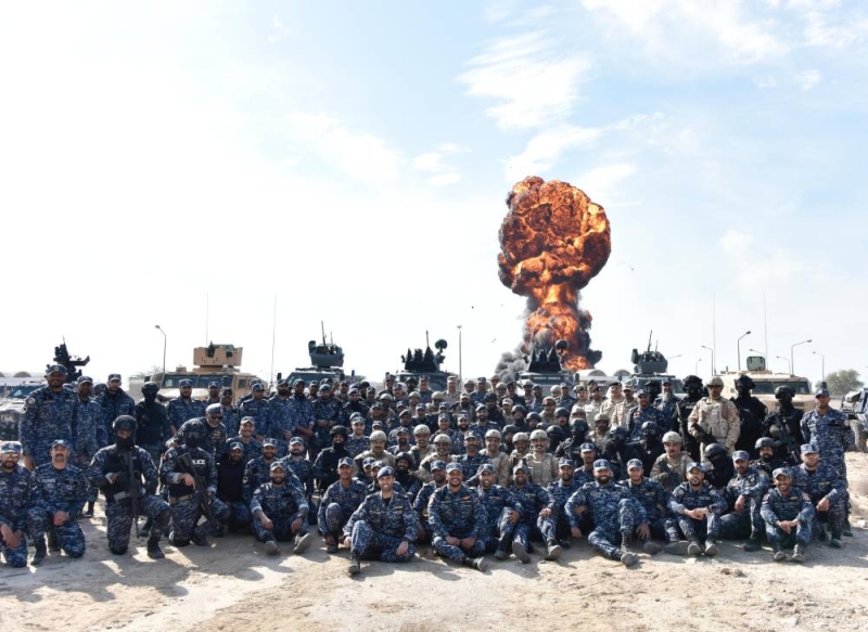 وشهد اختتام التمرين حضور الفريق النواف، ووكيل وزارة الداخلية المساعد لشؤون الأمن الخاص اللواء عبدالله سفاح الملا، إلى جانب آمر اللواء محمد صالح الآلي (94) من الجيش الكويتي العميد ركن براك عبدالمحسن الفرحان، وعدد من القيادات الأمنية والعسكرية. وتضمن التمرين تدريبات ميدانية شملت استخدام الذخيرة الحية والمتفجرات، ضمن سيناريوهات محاكاة للتعامل مع التحديات الأمنية المحتملة.