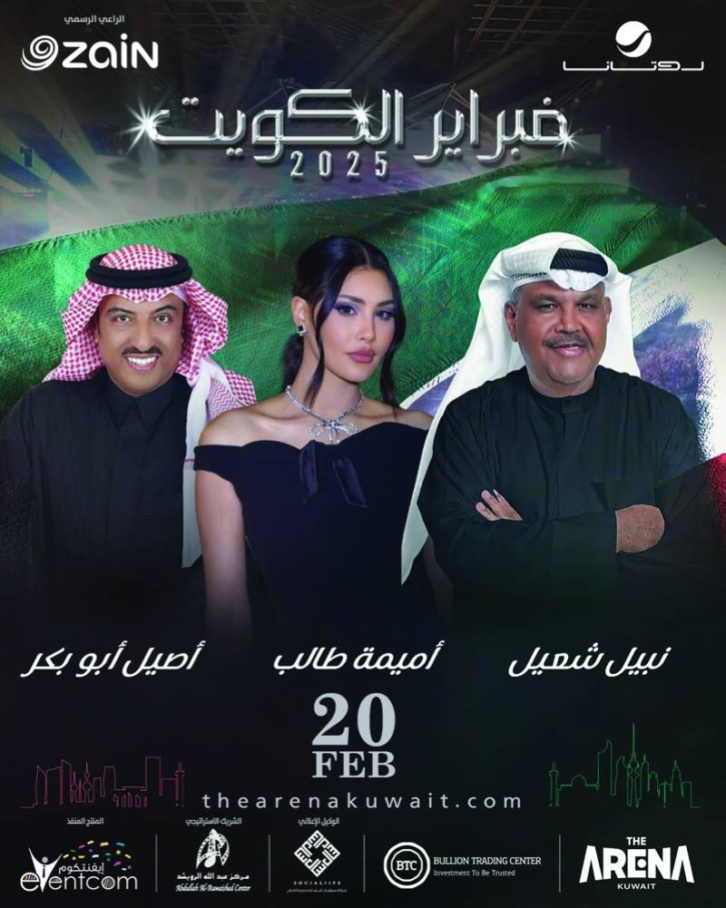 وبين أغان طربية وأخرى إيقاعية، وألوان موسيقية مختلفة، وجمهور واعٍ يتسم بالذائقة الفنية رفيعة المستوى، تزيّن المهرجان أسماء تشارك للمرة الأولى في حفلات «فبراير الكويت»، على غرار عايض يوسف، آدم، أحمد سعد وأميمة طالب، بالإضافة إلى أسماء لامعة يعشقها الجمهور الكويتي، وهم «فنان العرب» محمد عبده، و«نبض الكويت» الفنان القدير نبيل شعيل، إلى جانب «أخطبوط العود» عبادي الجوهر، ماجد المهندس، أصيل أبوبكر ومطرف المطرف.
