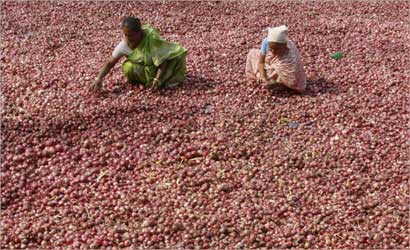 هؤلاء المزارعون ليسوا محظوظين كثيراً بالارتفاع غير المسبوق لأسعار المواد الغذائية، ومن بينها البصل الذي يجمعونه. ففي الهند، حيث يعملون، أتى التضخم على كل شيء بفعل ارتفاع أسعار النفط العالمية، مما يرجح عدم اتخاذ البنك المركزي الهندي قراراً بخفض الفائدة اقتفاء لأثر الفائدة الأميركية آخر الشهر الجاري. (رويترز)