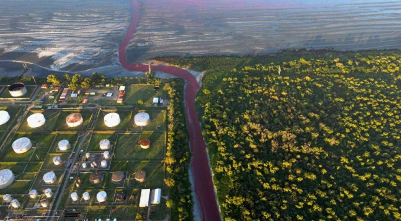 وأظهرت صور ومقاطع فيديو لمجرى سارندي، الذي يتدفق إلى مصب نهر ريو دي لا بلاتا، التغير المفاجئ في اللون.