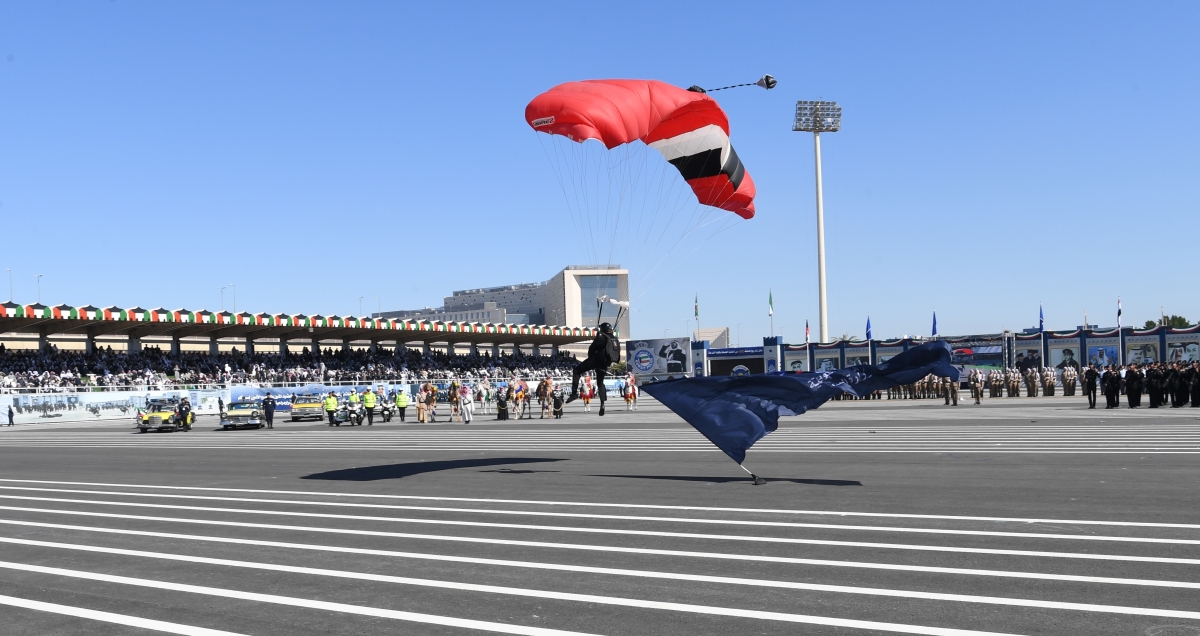 كما تم عرض مراحل تأسيس الشرطة في وزارة الداخلية والتي مرت بعدة مراحل مفصلية منذ تأسيسها شكلت في مجملها منظومة أمنية متكاملة مستعرضين مراحل تطور بعض البدل والآليات العسكرية منذ نشأتها وحتى وقتنا الحالي والتي مثلها خير تمثيل رجال أبطال من وزارة الداخلية، بعدها تم عرض نزول فريق وزارة الداخلية للقفز الحر بالمظلات.أعقب ذلك دخول الخريجين إلى ساحة العرض لأداء القسم والذي ألقاه آمر كتيبة شؤون الطلبة العقيد حسن جاسم بوعباس.