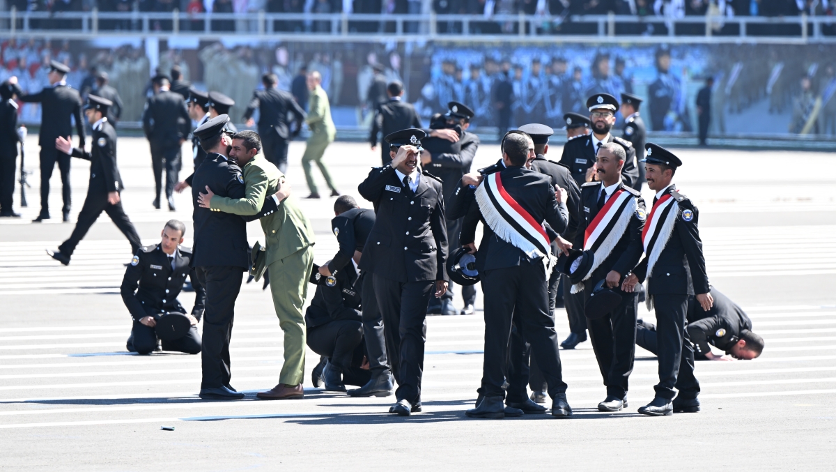 وأضاف: «تحظى كافة جهود الأكاديمية باهتمام بالغ ورعاية كريمة من سيدي معالي النائب الأول لرئيس مجلس الوزراء ووزير الداخلية حرصا من معاليه على تحقيق أعلى مراتب التميز والإبداع».ثم توجه للخريجين، قائلا: «اليوم تطوى صفحة الدراسة والإعداد والتأهيل لكن كتاب العلم والانضباط لا يغلق بل نفتح فيه فصلا جديدا عنوانه: المسؤولية والتضحية والعطاء. أوصيكم بتقوى الله في عملكم.. حافظوا على القيم الوطنية الراسخة.. التزموا بميثاق الشرف العسكري.. اعملوا بروح الفريق الواحد لتكونوا قدوة في العدل والالتزام والنزاهة».