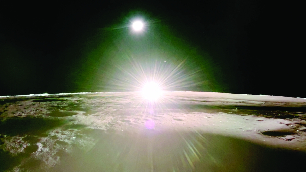 كشفت وكالة الفضاء الأميركية (ناسا) وشركة الفضاء الأميركية «فايرفلاي ايروسبايس» عن أول صور عالية الدقة لغروب الشمس القمري، التقطها روبوت هبط على سطح القمر في مطلع مارس، وبدت فيها أرض بيضاء وهالة خضراء وثلاث نقاط مضيئة في السماء هي الشمس والأرض والزهرة.