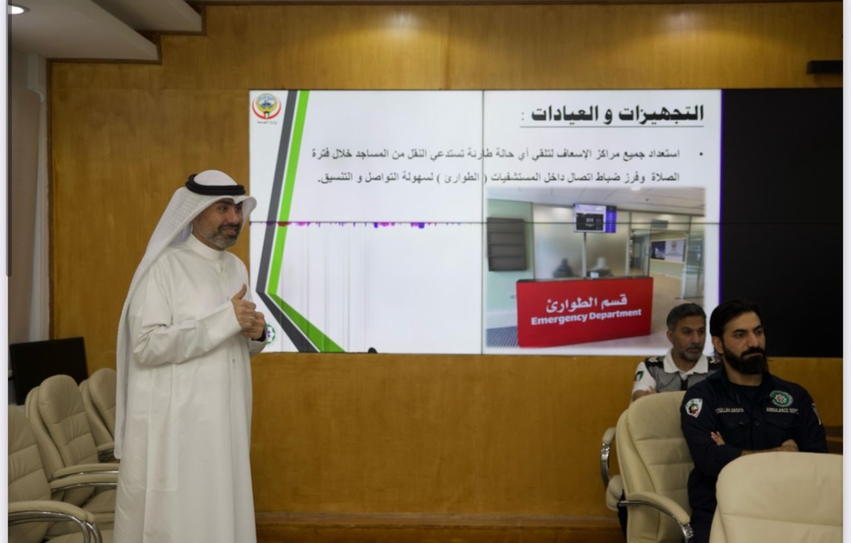 حضر الاجتماع الوكيل المساعد لشؤون الخدمات الطبية المساندة الدكتور عبدالله الفرس، والمتحدث الرسمي باسم وزارة الصحة الدكتور عبدالله السند، ومدير إدارة الطوارئ الطبية الدكتور أحمد الشطي، ومراقب الإسعاف، عبدالله النفيس، ورئيس مجلس أقسام الطوارئ، الدكتورة فاطمة الكندري.