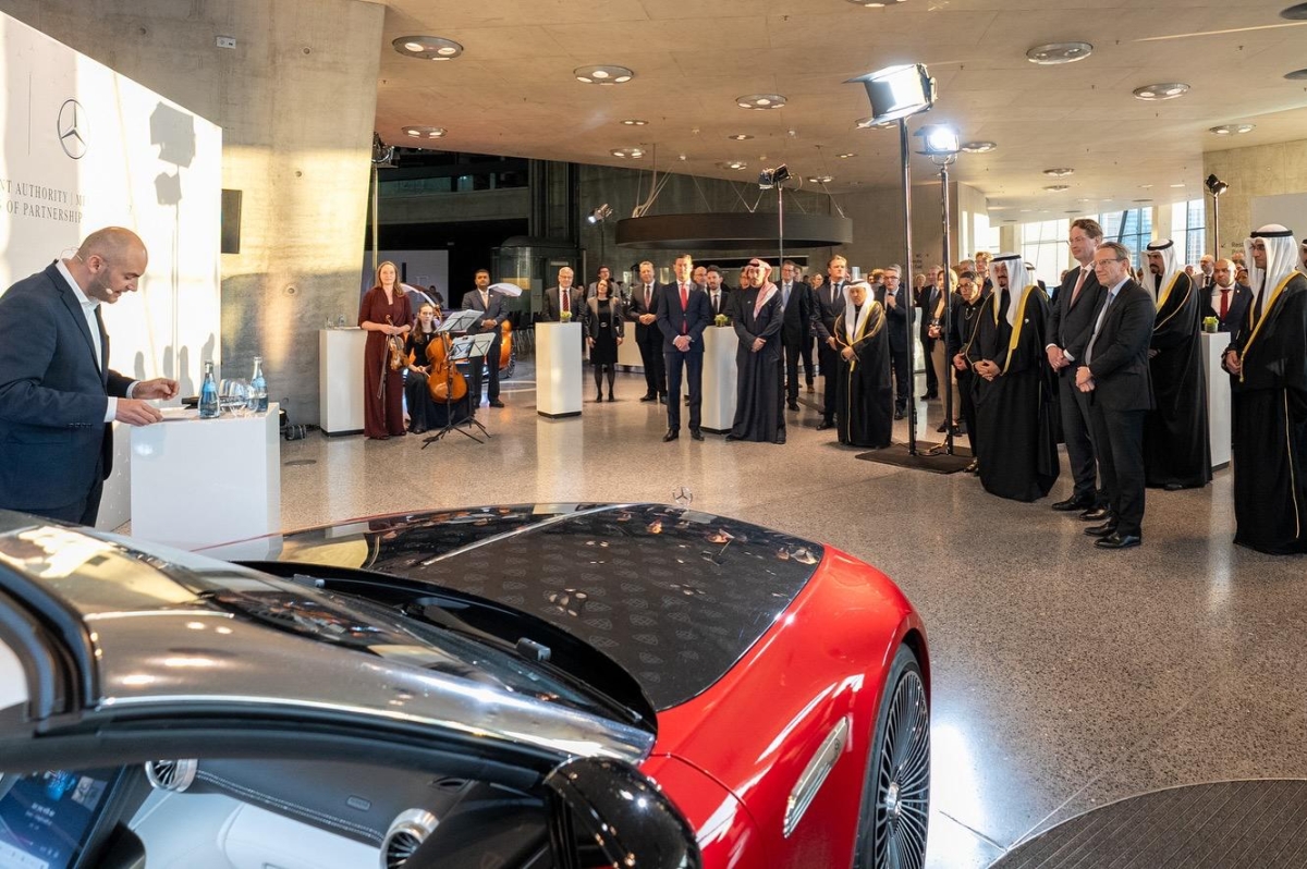 وألقى العضو المنتدب للهيئة العامة للاستثمار الشيخ سعود سالم عبدالعزيز الصباح، كلمة أعرب خلالها عن تشرفه وسعادته بالتواجد في مدينة شتوتغارت «مهد صناعة السيارات الحديثة، للمشاركة في الاحتفال بمرور 50 عاما على قيام الشراكة الاستراتيجية الراسخة بين دولة الكويت وشركة مرسيدس بنز، والتي تعد واحدة من أعرق وأهم العلامات التجارية في العالم».