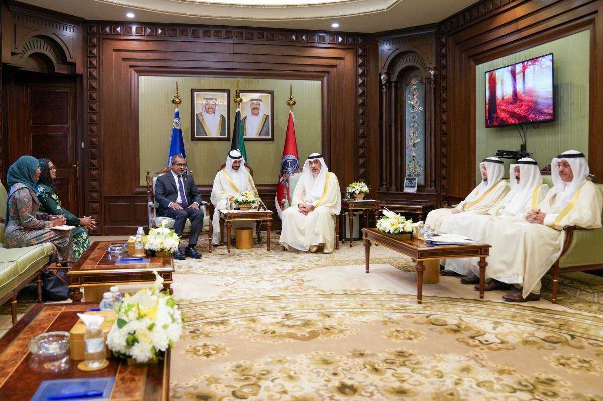 استقبل رئيس مجلس الوزراء بالإنابة الشيخ فهد اليوسف وبحضور نائب رئيس مجلس الوزراء ووزير الدولة لشؤون مجلس الوزراء شريدة المعوشرجي في قصر بيان اليوم، وزير الخارجية في جمهورية المالديف الدكتور عبدالله خليل والوفد المرافق له بمناسبة زيارته للبلاد، حيث جرى استعراض العلاقات الثنائية المتطورة بين البلدين الصديقين وسبل تعزيزها في مختلف المجالات إضافة إلى تبادل وجهات النظر حول عدد من القضايا الإقليمية والدولية ذات الاهتمام المشترك.