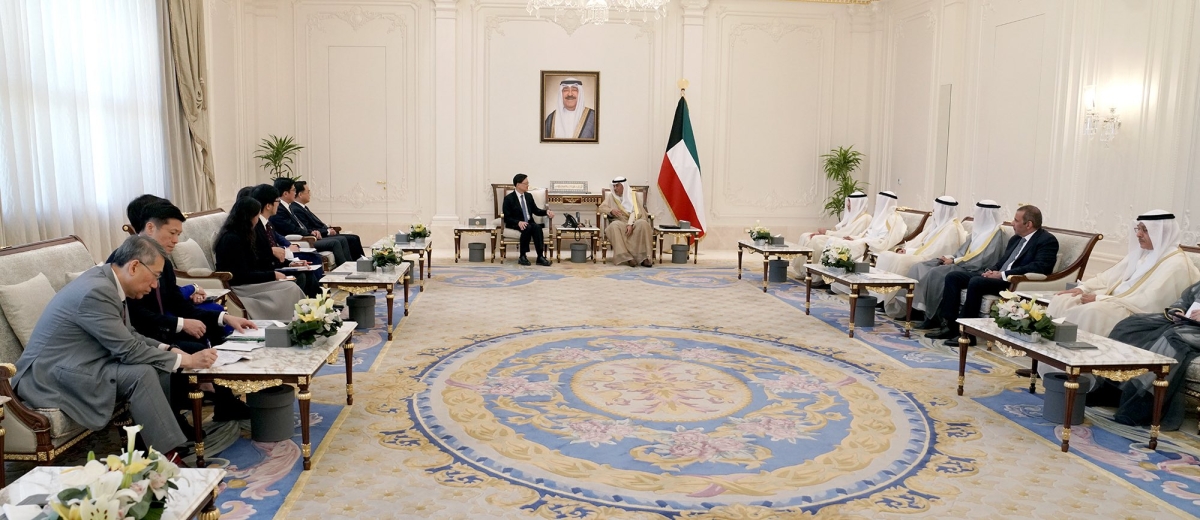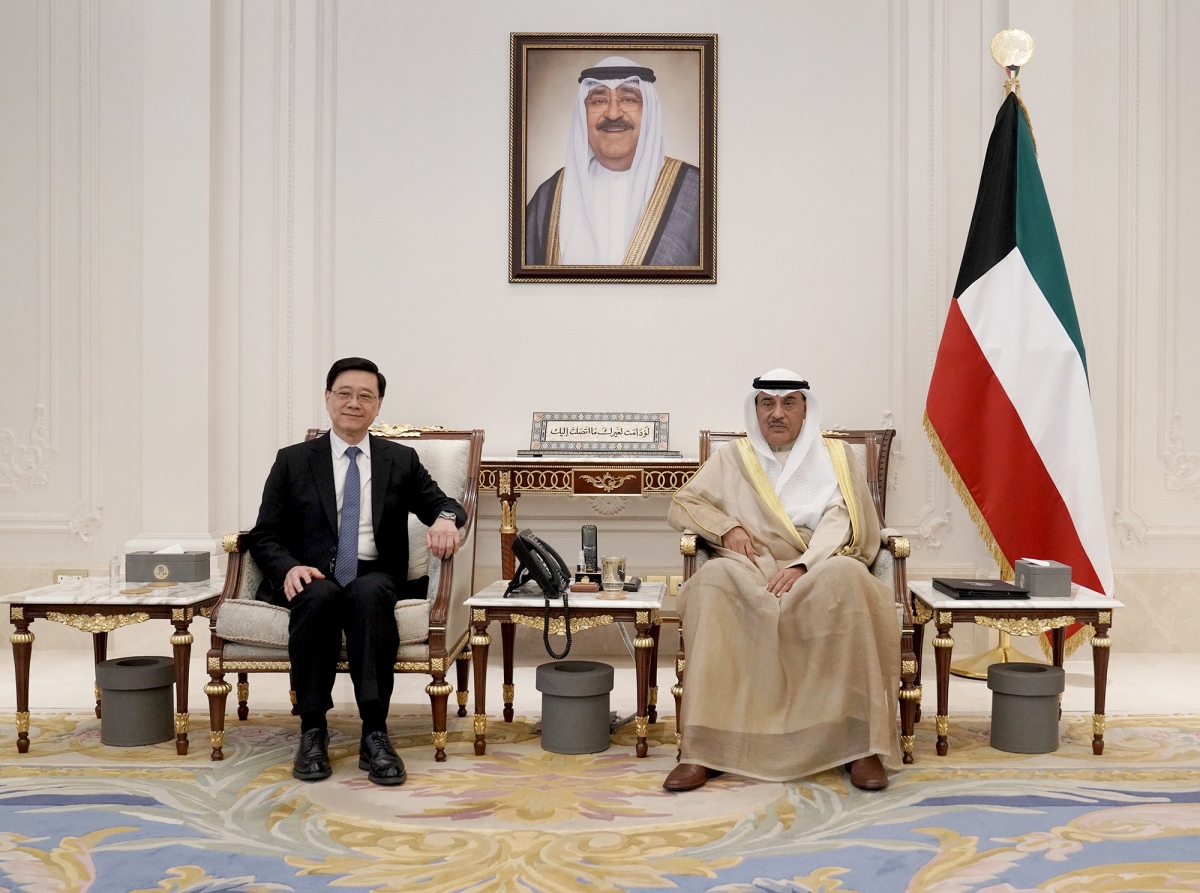 استقبل سمو ولي العهد الشيخ صباح الخالدفي قصر بيان صباح اليوم بحضور رئيس مجلس الوزراء بالإنابة الشيخ فهد اليوسف رئيس منطقة هونغ كونغ الإدارية جون لي كاتشيو والوفد المرافق وذلك بمناسبة زيارته للبلاد.
