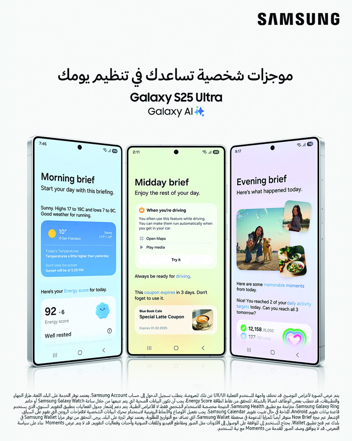 مع واجهة «One UI 7» تعد سلسلة Galaxy S25 رفيقاً حقيقياً يتميز بالذكاء الاصطناعي، ويفهم سياق احتياجاتك وتفضيلاتك، ويوفر تجارب ذكاء اصطناعي مخصصة مع الحفاظ على الخصوصية في كل خطوة. وتُعتبر هذه السلسلة بداية لرؤية مشتركة مع «Google» لإعادة تشكيل نظام Android مع وضع الذكاء الاصطناعي في جوهره، وجمع المطورين والشركاء من جميع أنحاء العالم.