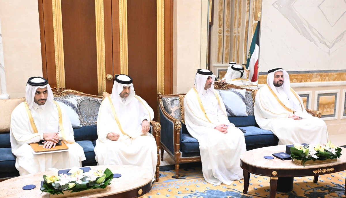 استقبل سمو أمير البلاد الشيخ مشعل الأحمد الجابر الصباح في قصر بيان صباح اليوم رئيس مجلس الوزراء سمو الشيخ أحمد العبدالله ورئيس مجلس الوزراء وزير الخارجية بدولة قطر الشيخ محمد بن عبدالرحمن بن جاسم آل ثاني والوفد المرافق، وذلك بمناسبة زيارته الرسمية للبلاد حيث سلم سموه رسالة خطية من سمو أمير دولة قطر الشيخ تميم بن حمد آل ثاني تتعلق بالعلاقات الأخوية المتميزة التي تربط البلدين والشعبين الشقيقين وسبل دعمها وتنميتها في المجالات كافة وآخر المستجدات على الساحتين الإقليمية والدولية.