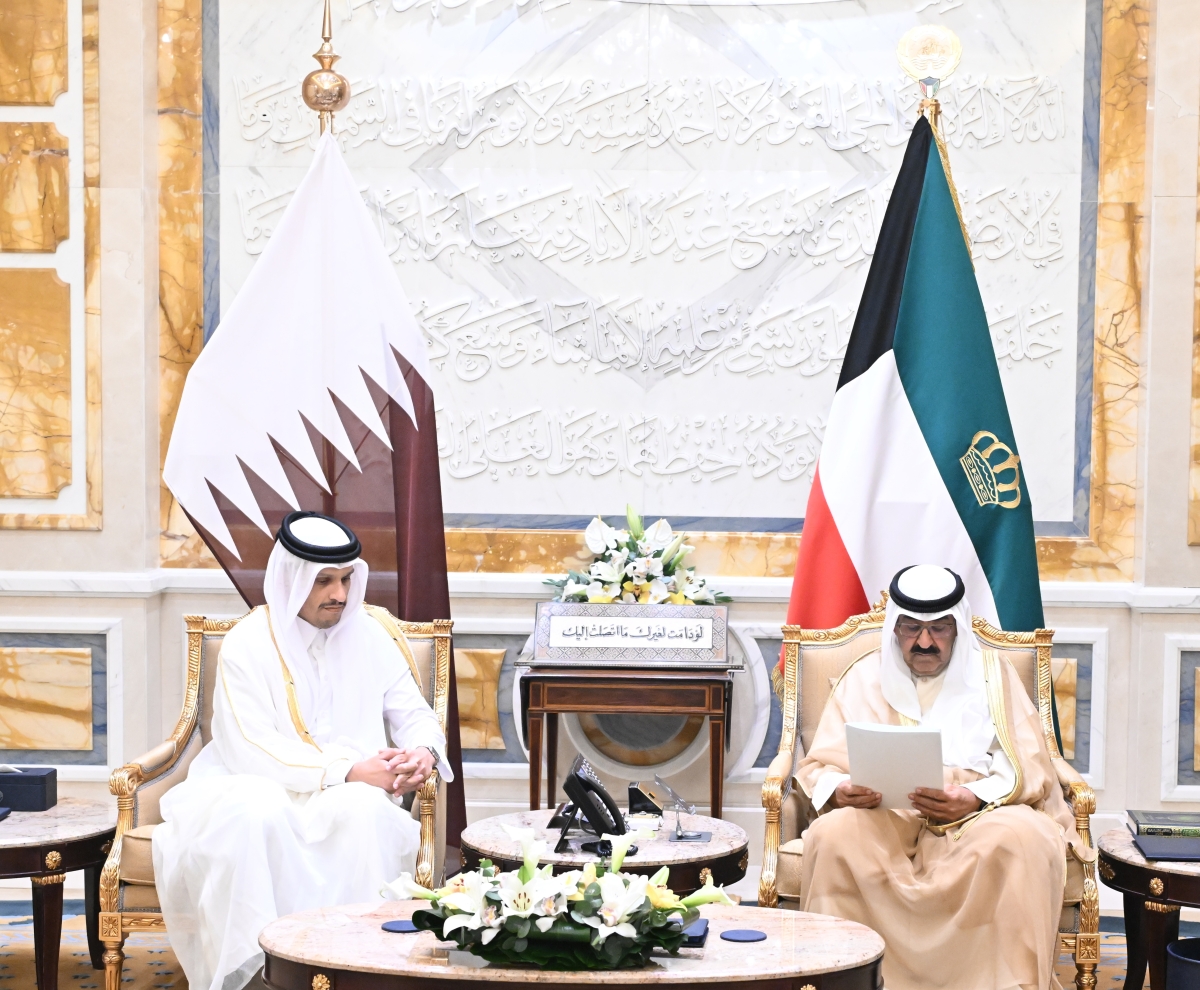 سمو الأمير يستقبل رئيس الوزراء القطري ويتسلم رساله خطية من أمير دولة قطر