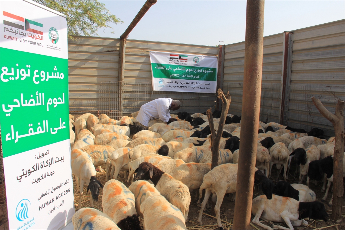 نفذ بيت الزكاة الكويتي مشروع توزيع لحوم الأضاحي للعام الحالي على 40800 مستفيد في تسع محافظات يمنية وذلك استمرارا لحملة (الكويت بجانبكم) في عامها العاشر على التوالي.