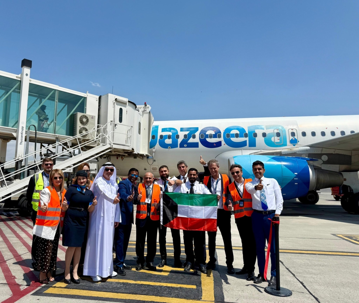 وكان على متن الرحلة الافتتاحية سفير أرمينيا لدى الكويت أرسين أراكليان إلى جانب الرئيس التنفيذي لطيران الجزيرة براثان باسوباثي.