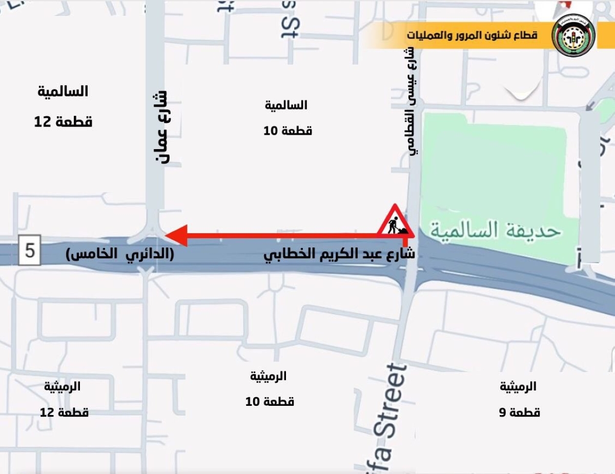 «المرور»: إغلاق جزئي لـ«شارع الخطابي» في السالمية.. حتى الاثنين المقبل