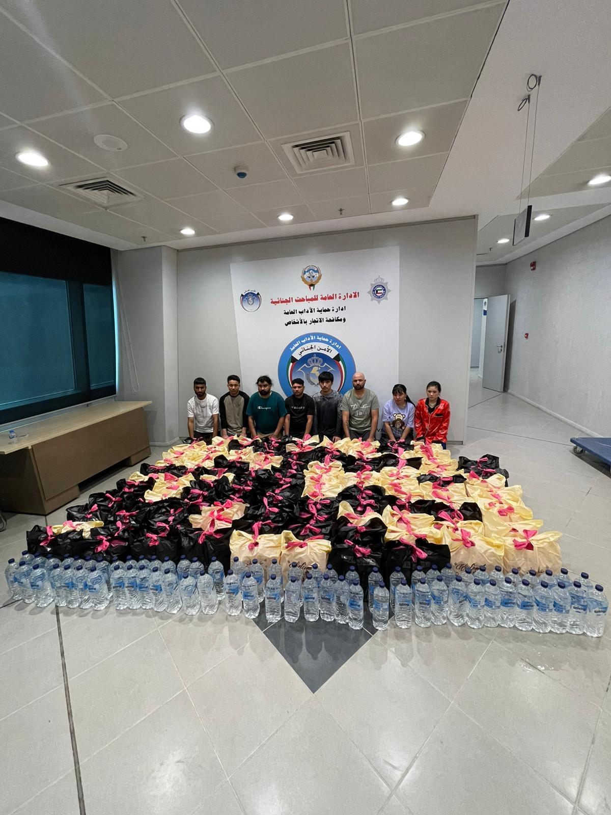 بإشراف مباشر من النائب الأول لرئيس مجلس الوزراء ووزير الداخلية الشيخ فهد اليوسف، وبحضور مدير عام بلدية الكويت بالتكليف المهندسة منال العصفور، ووكيل وزارة الداخلية المساعد لشؤون الأمن الجنائي اللواء حامد الدواس، وعدد من مسؤولي الجهات المشاركة، تمكن قطاع الأمن الجنائي، ممثلاً في الإدارة العامة للمباحث الجنائية، وبالتعاون مع قوة الإطفاء العام، وبلدية الكويت، والهيئة العامة للبيئة، ووزارة الكهرباء والماء والطاقة المتجددة، يوم أمس الأربعاء، من ضبط تشكيل عصابي يدير أنشطة لتصنيع وترويج الخمور المحلية داخل منازل مؤجرة في 6 مناطق سكنية مختلفة، شملت: مشرف، جابر العلي، النهضة، الفيحاء، سعد العبدالله، والقصور، بهدف إبعاد الشبهات عن نشاطهم غير القانوني.
