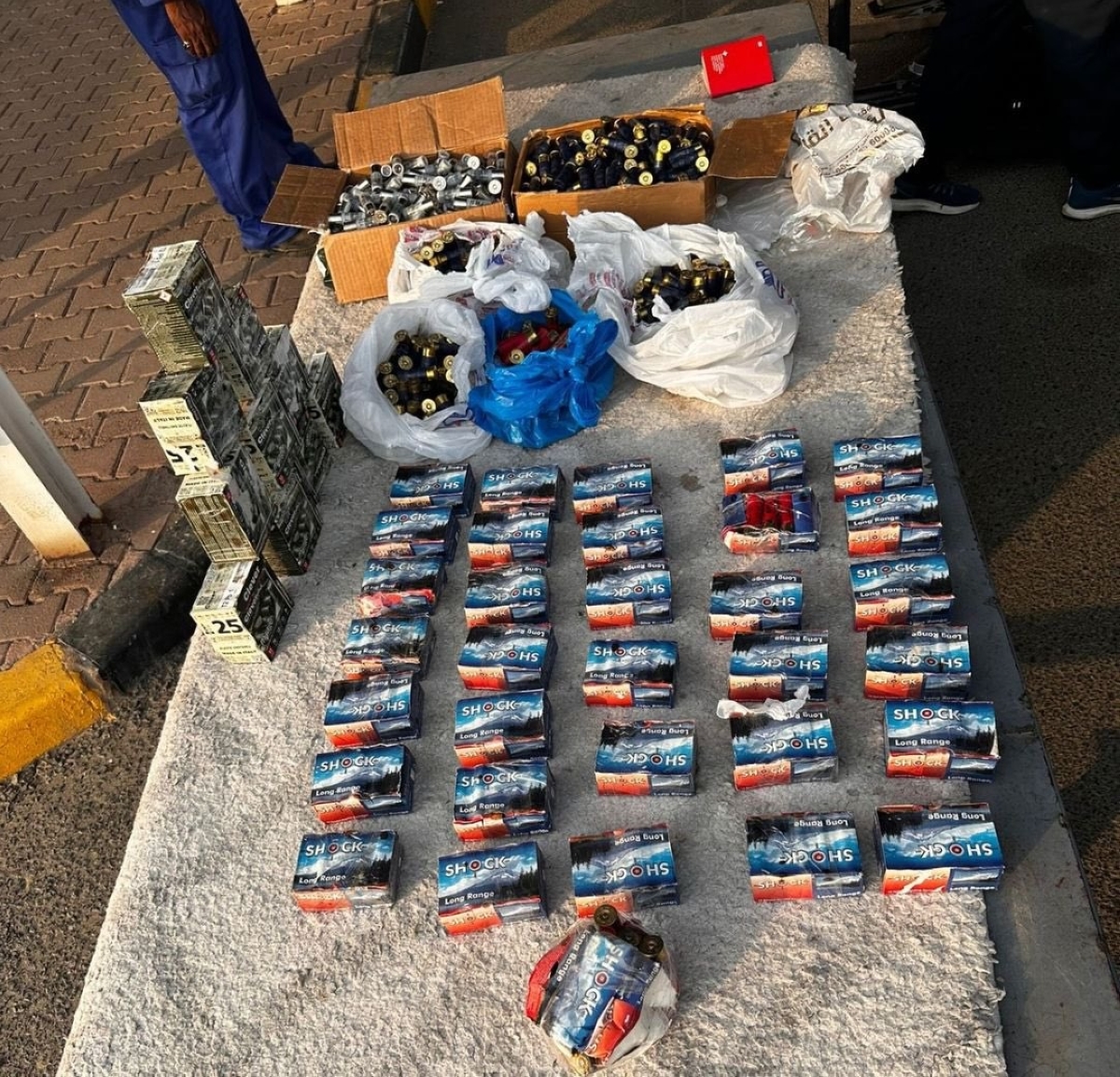 وأضاف بيان «الجمارك»: «كما أسفرت إجراءات التفتيش في واقعة أخرى عن ضبط شخص عراقي الجنسية يعمل سائقاً لنقل الأشخاص أثناء مغادرته الكويت باتجاه الجمهورية العراقية، وعُثر في مركبته على 1395 طلقة نارية لسلاح الشوزن عيار 12 مليمترا مخبأة بإحكام في أماكن سرية وتم إحالة المضبوطات إلى وزارة الداخلية».